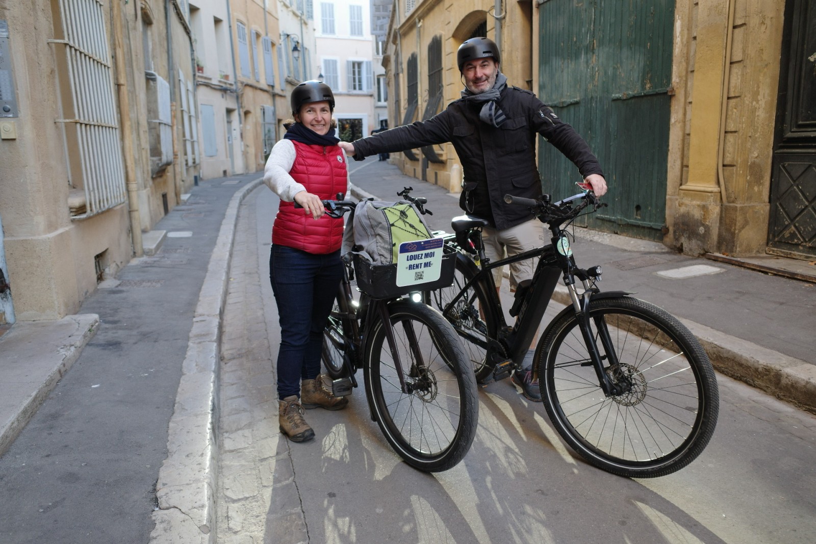En cette fin d annee tres ensoleillee sur Aix en Provence , un couple de cyclistes est parti a la decouverte de La Sainte Victoire grace a nos vélos Touring très confortable et performants.